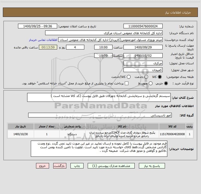 نام دستگاه خریدار:اداره کل کتابخانه های عمومی استان مرکزی