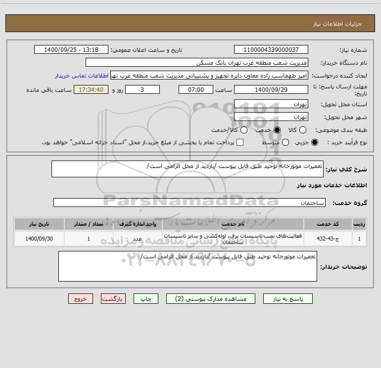 نام دستگاه خریدار:مدیریت شعب منطقه غرب تهران بانک مسکن