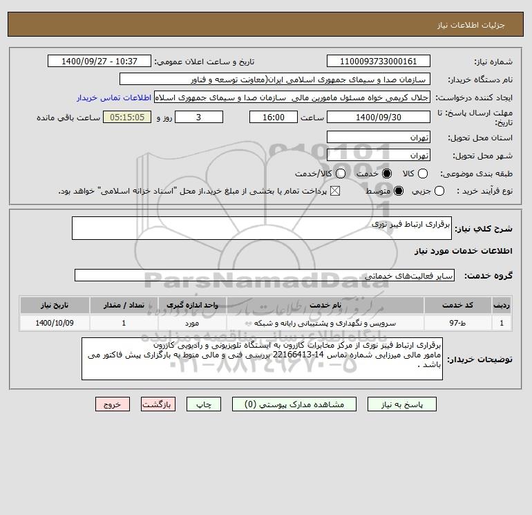 نام دستگاه خریدار: سازمان صدا و سیمای جمهوری اسلامی ایران(معاونت توسعه و فناور