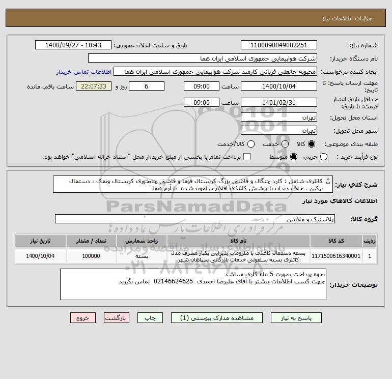 نام دستگاه خریدار:شرکت هواپیمایی جمهوری اسلامی ایران هما
