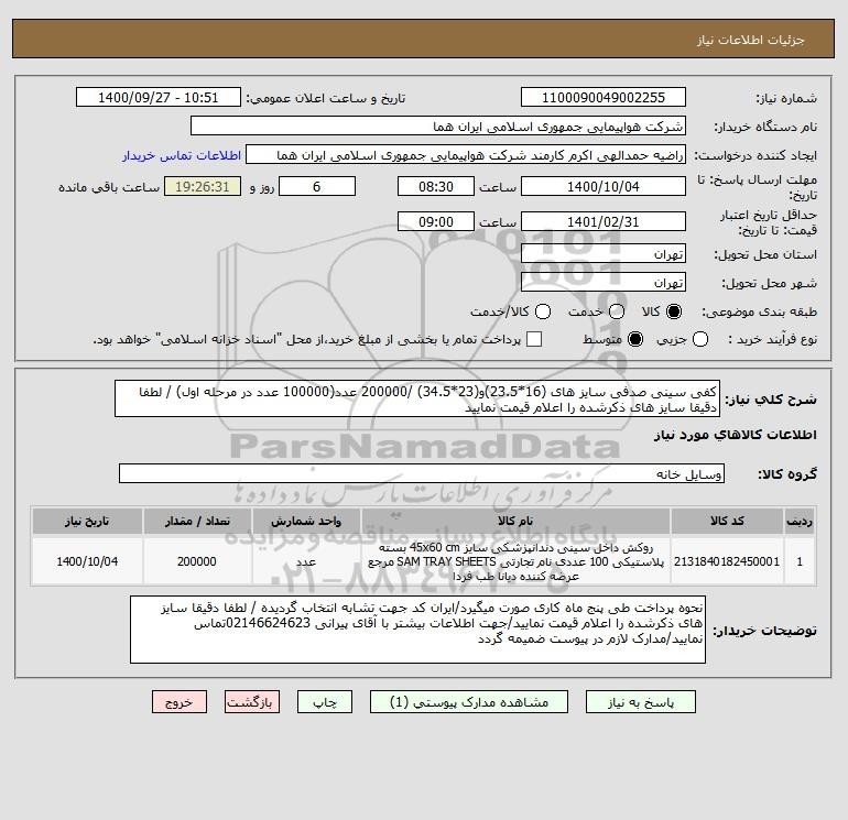نام دستگاه خریدار:شرکت هواپیمایی جمهوری اسلامی ایران هما