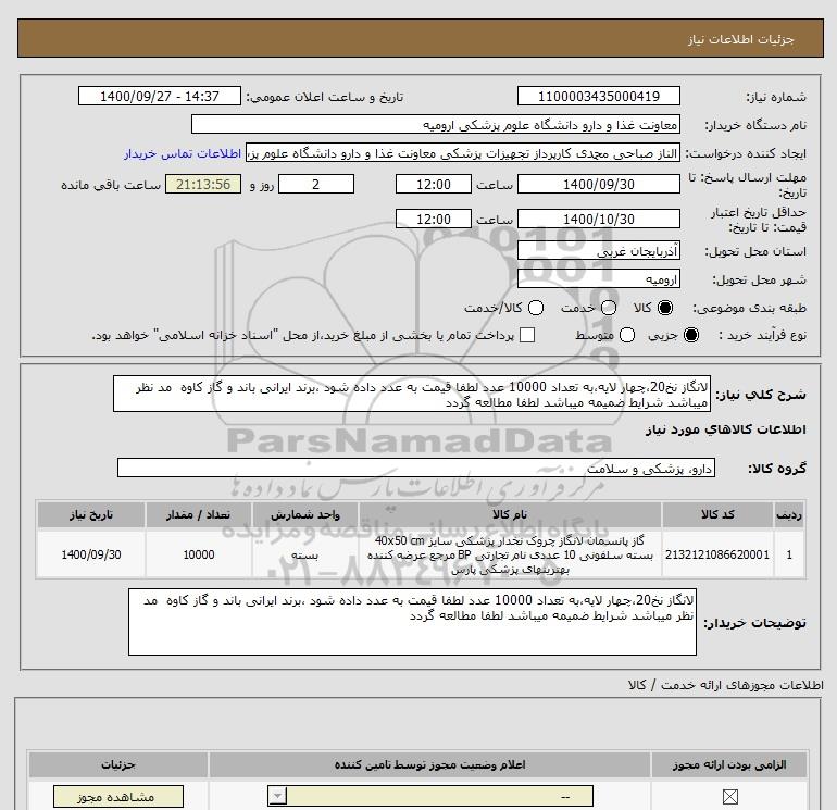 نام دستگاه خریدار:معاونت غذا و دارو دانشگاه علوم پزشکی ارومیه
