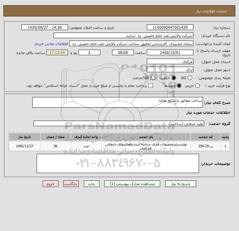 شرح کلی نیاز: ساخت مطابق با شرح تقاضا