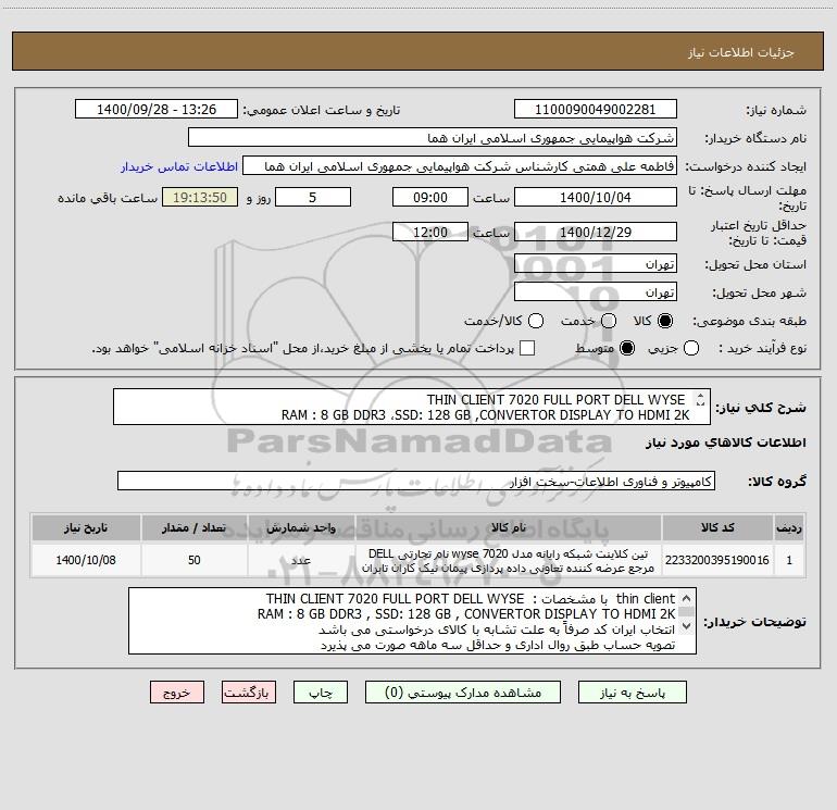 نام دستگاه خریدار:شرکت هواپیمایی جمهوری اسلامی ایران هما