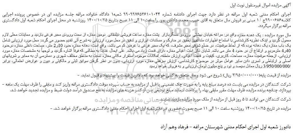 آگهی مزایده اموال غیرمنقول نوبت اول