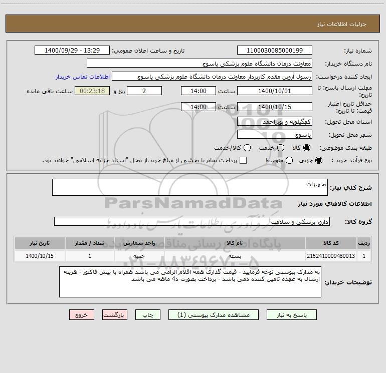 نام دستگاه خریدار:معاونت درمان دانشگاه علوم پزشکی یاسوج