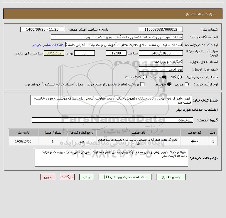 نام دستگاه خریدار:معاونت آموزشی و تحصیلات تکمیلی دانشگاه علوم پزشکی یاسوج