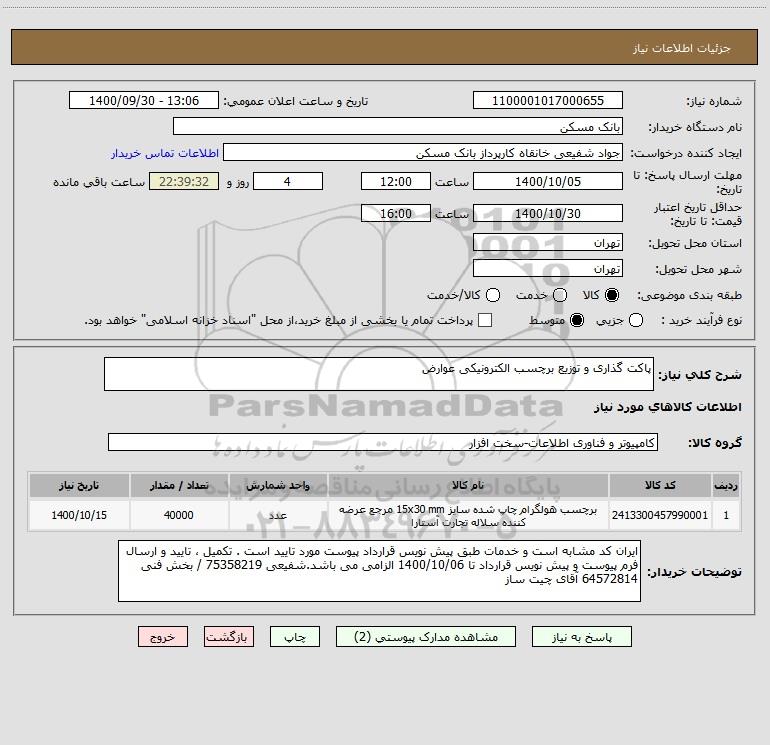 شرح کلی نیاز: پاکت گذاری و توزیع برچسب الکترونیکی عوارض