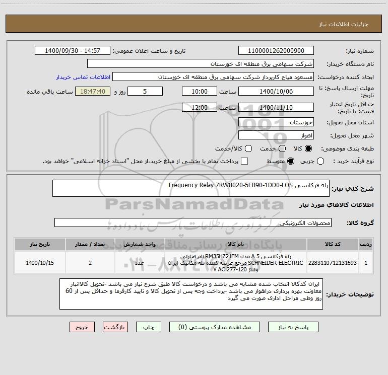 نام دستگاه خریدار:شرکت سهامی برق منطقه ای خوزستان