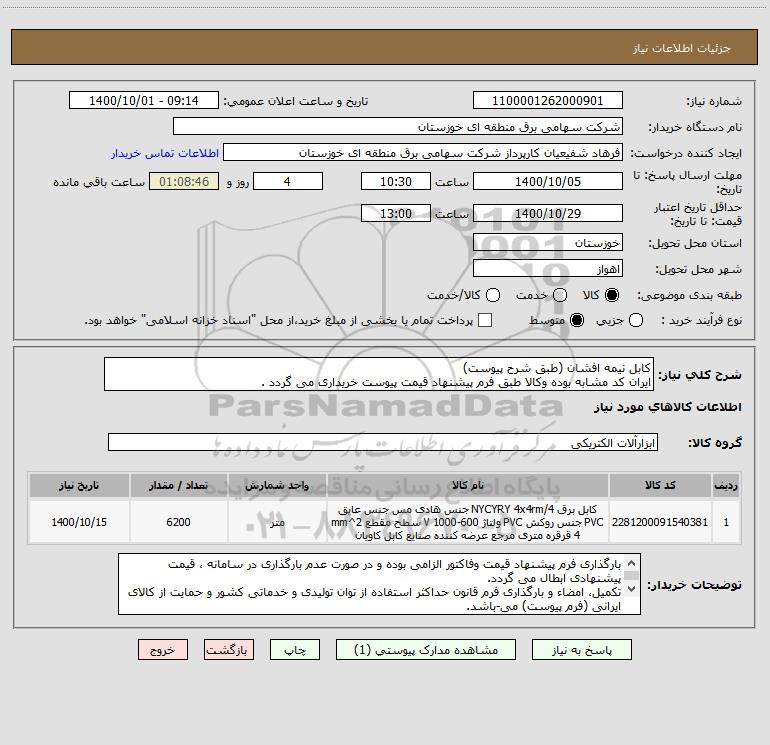 شرح کلی نیاز: کابل نیمه افشان (طبق شرح پیوست)