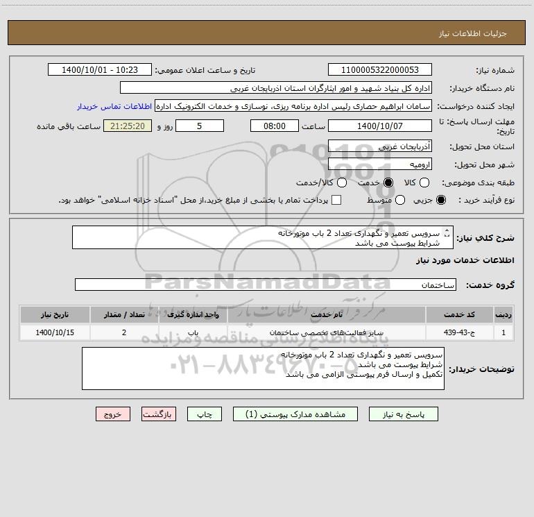 نام دستگاه خریدار:اداره کل بنیاد شهید و امور ایثارگران استان اذربایجان غربی