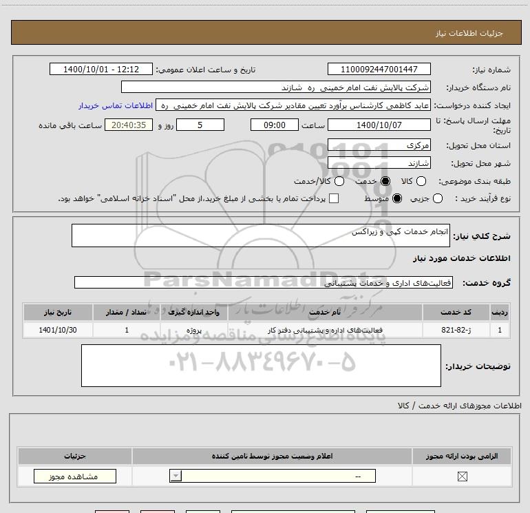 شرح کلی نیاز: انجام خدمات کپی و زیراکس