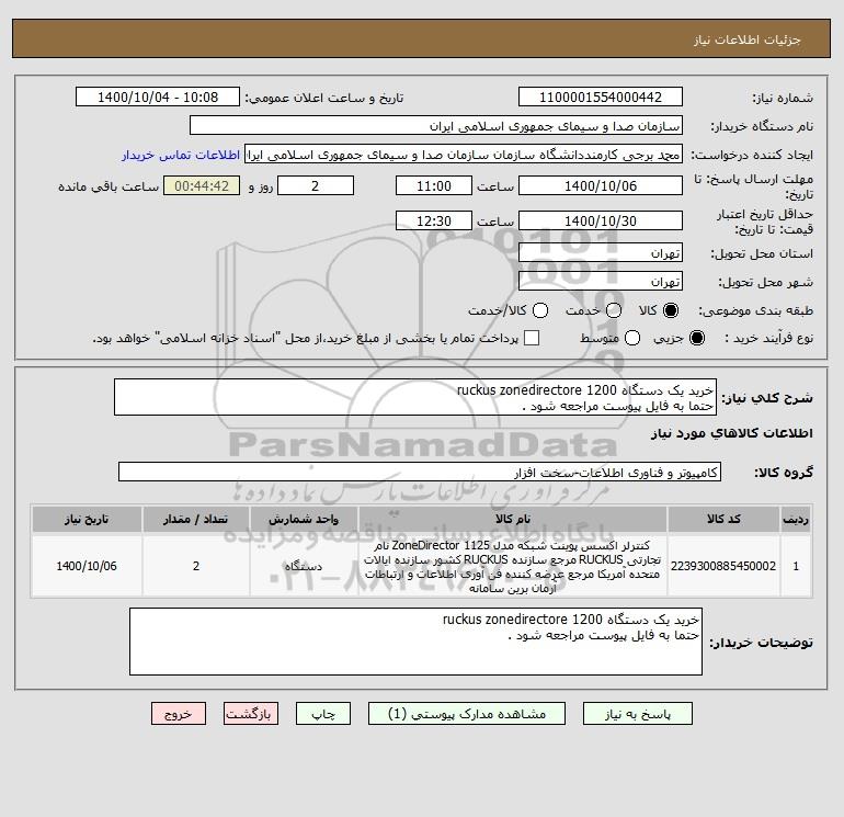 شرح کلی نیاز: خرید یک دستگاه ruckus zonedirectore 1200