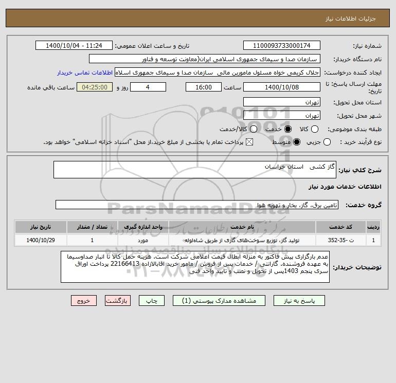 نام دستگاه خریدار: سازمان صدا و سیمای جمهوری اسلامی ایران(معاونت توسعه و فناور