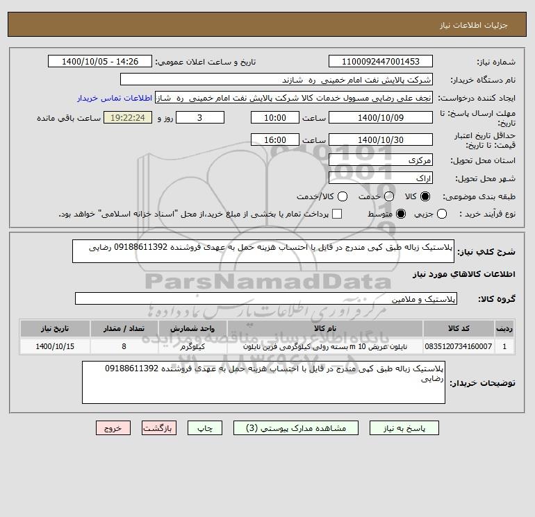 نام دستگاه خریدار:شرکت پالایش نفت امام خمینی ره شازند