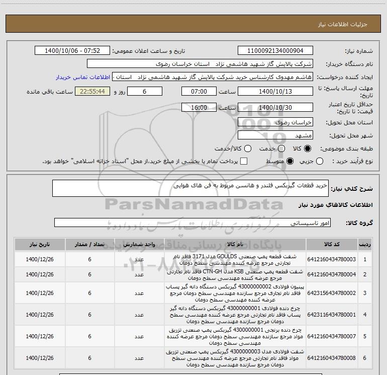 نام دستگاه خریدار:شرکت پالایش گاز شهید هاشمی نژاد استان خراسان رضوی