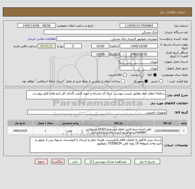 استعلام سامانه اعلام خطر مطابق لیست پیوست. ایران کد مشابه و جهت قیمت گذاری کل ایتم های فایل پیوست. ؟