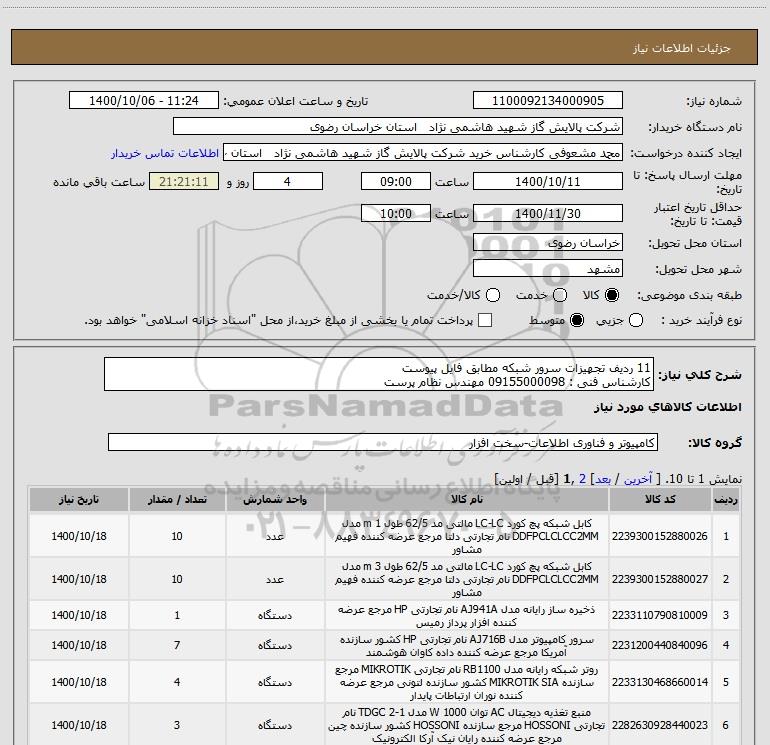 نام دستگاه خریدار:شرکت پالایش گاز شهید هاشمی نژاد استان خراسان رضوی