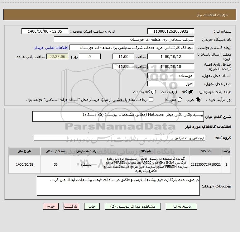 شرح کلی نیاز: بیسیم واکی تاکی مجاز Motocom (مطابق مشخصات پیوست) (36 دستگاه)