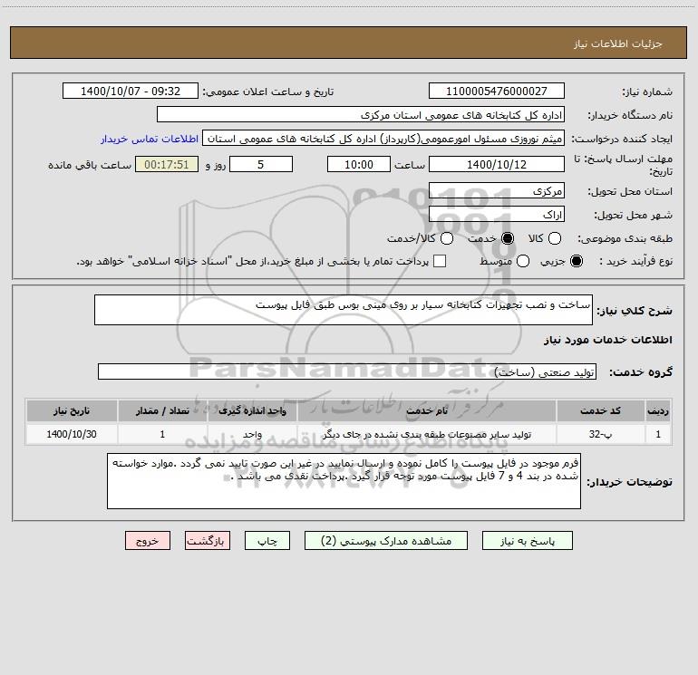 شرح کلی نیاز: ساخت و نصب تجهیزات کتابخانه سیار بر روی مینی بوس طبق فایل پیوست