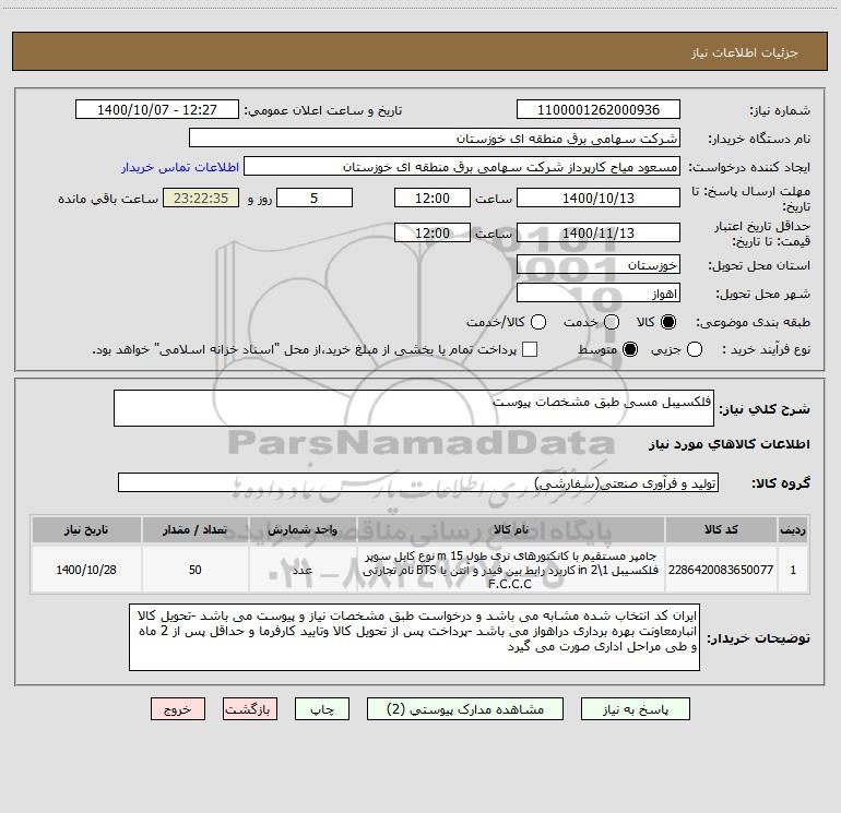 استعلام فلکسیبل مسی طبق مشخصات پیوست , استعلام فلکسیبل مسی طبق مشخصات پیوست