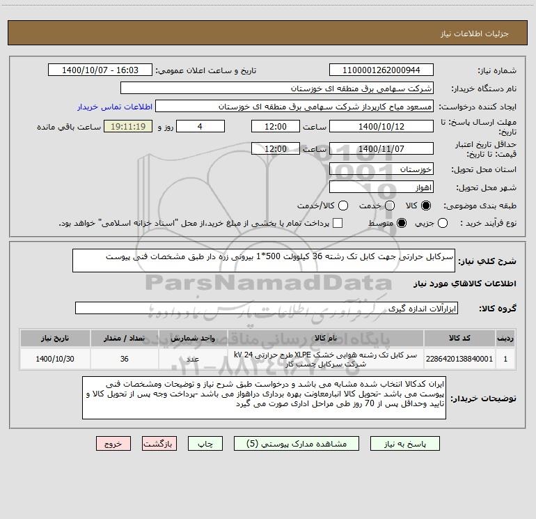 نام دستگاه خریدار:شرکت سهامی برق منطقه ای خوزستان