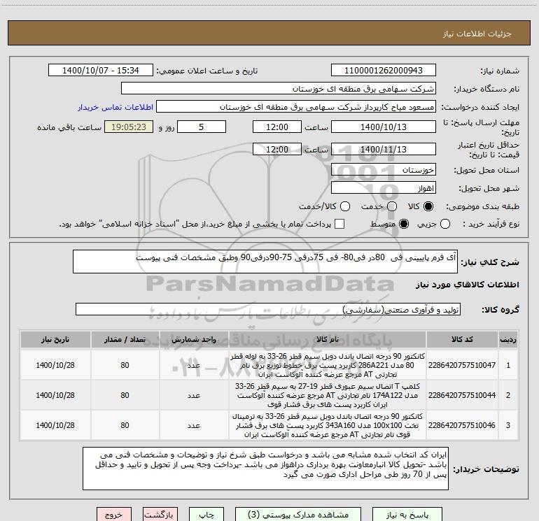 نام دستگاه خریدار:شرکت سهامی برق منطقه ای خوزستان