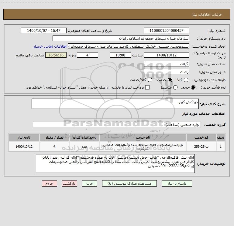 نام دستگاه خریدار:سازمان صدا و سیمای جمهوری اسلامی ایران