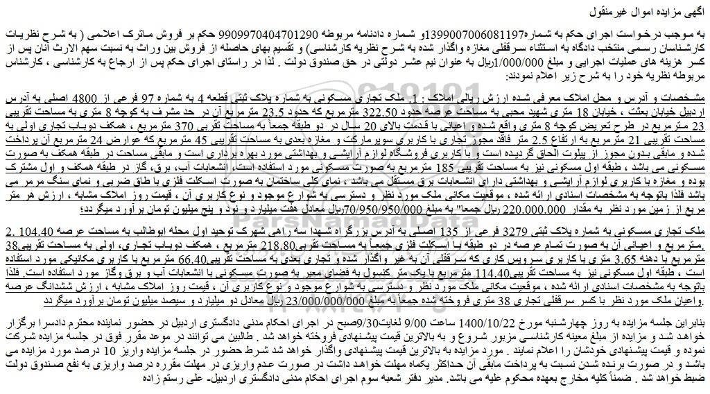 اگهی مزایده اموال غیرمنقول