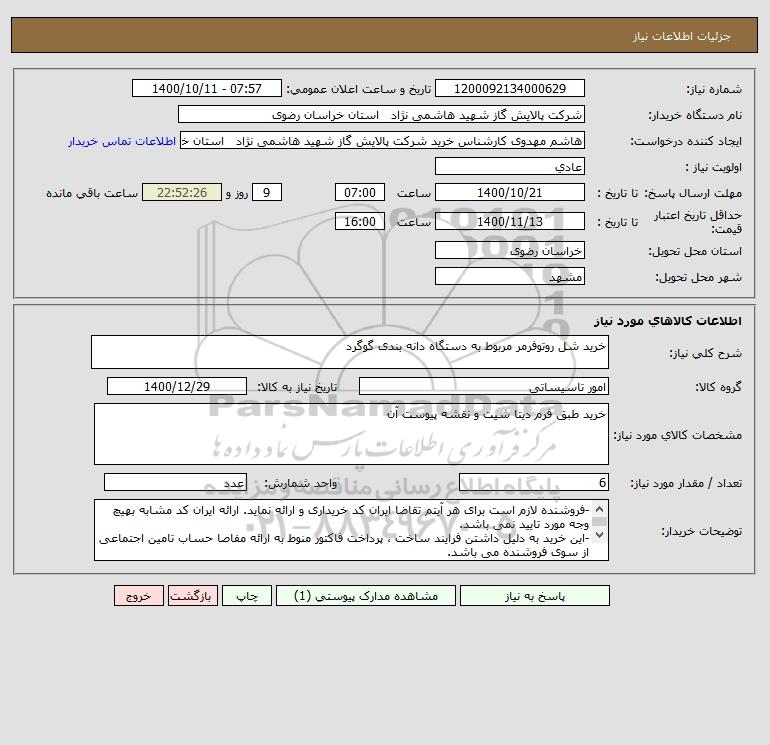 نام دستگاه خریدار:شرکت پالایش گاز شهید هاشمی نژاد استان خراسان رضوی