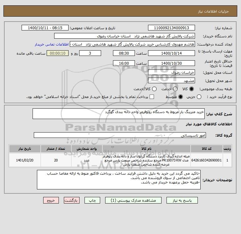 نام دستگاه خریدار:شرکت پالایش گاز شهید هاشمی نژاد استان خراسان رضوی