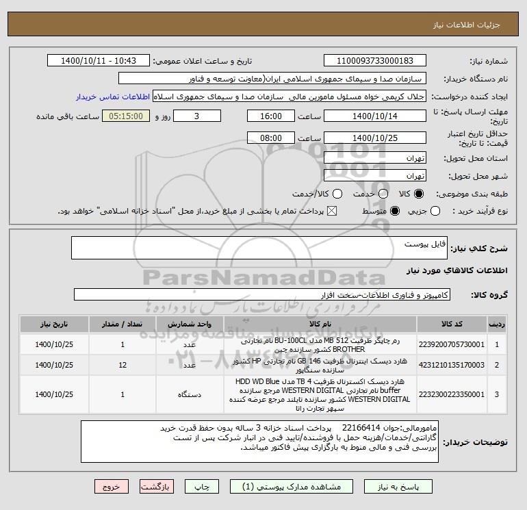 نام دستگاه خریدار: سازمان صدا و سیمای جمهوری اسلامی ایران(معاونت توسعه و فناور