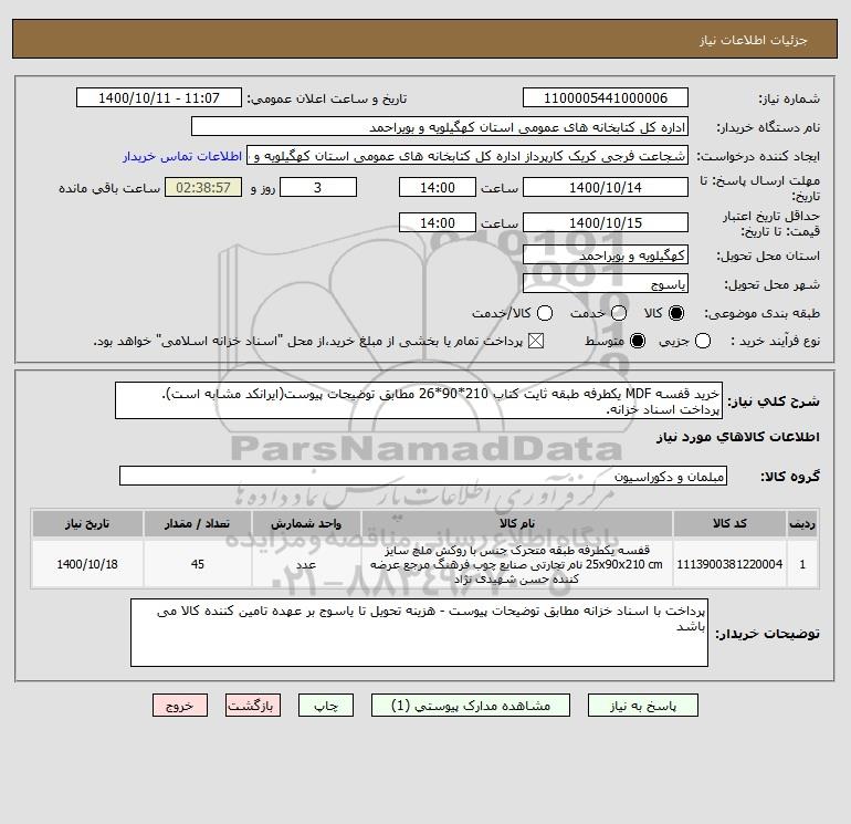 نام دستگاه خریدار:اداره کل کتابخانه های عمومی استان کهگیلویه و بویراحمد