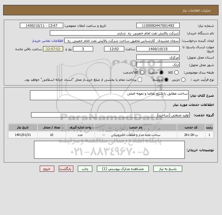 شرح کلی نیاز: ساخت مطابق با شرح تقاضا و نمونه اصلی