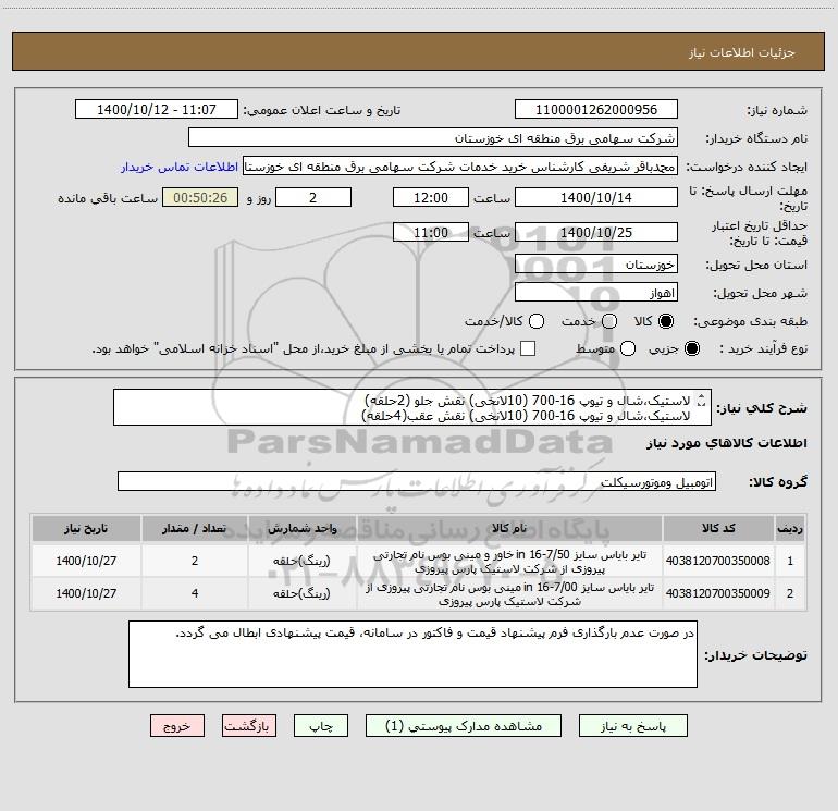 نام دستگاه خریدار:شرکت سهامی برق منطقه ای خوزستان