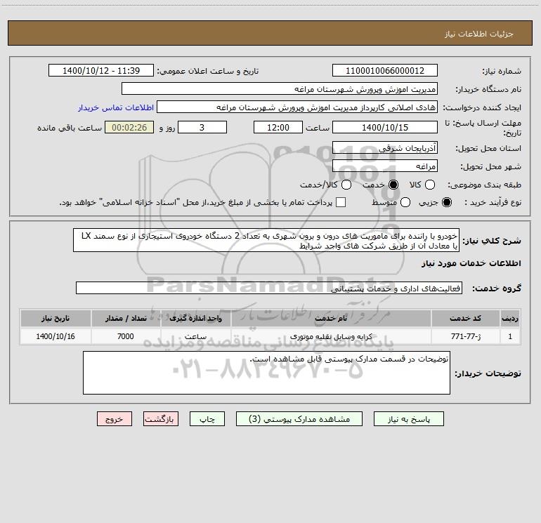 نام دستگاه خریدار:مدیریت اموزش وپرورش شهرستان مراغه