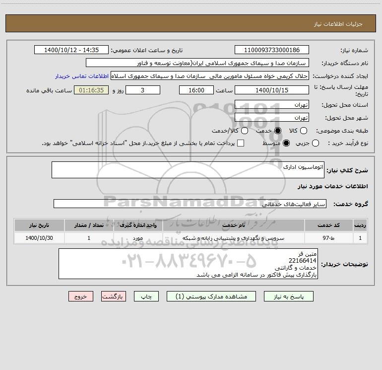 نام دستگاه خریدار: سازمان صدا و سیمای جمهوری اسلامی ایران(معاونت توسعه و فناور