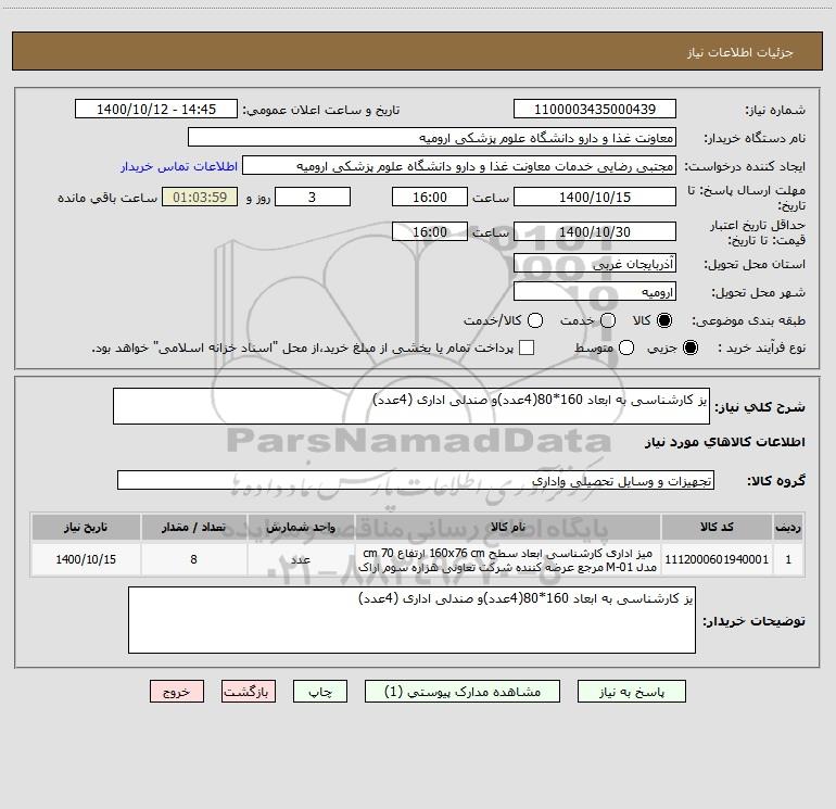 شرح کلی نیاز: یز کارشناسی به ابعاد 160*80(4عدد)و صندلی اداری (4عدد)