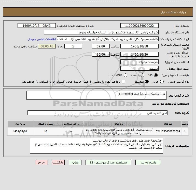 شرح کلی نیاز: خرید مکانیکال سیل( آببند)complete