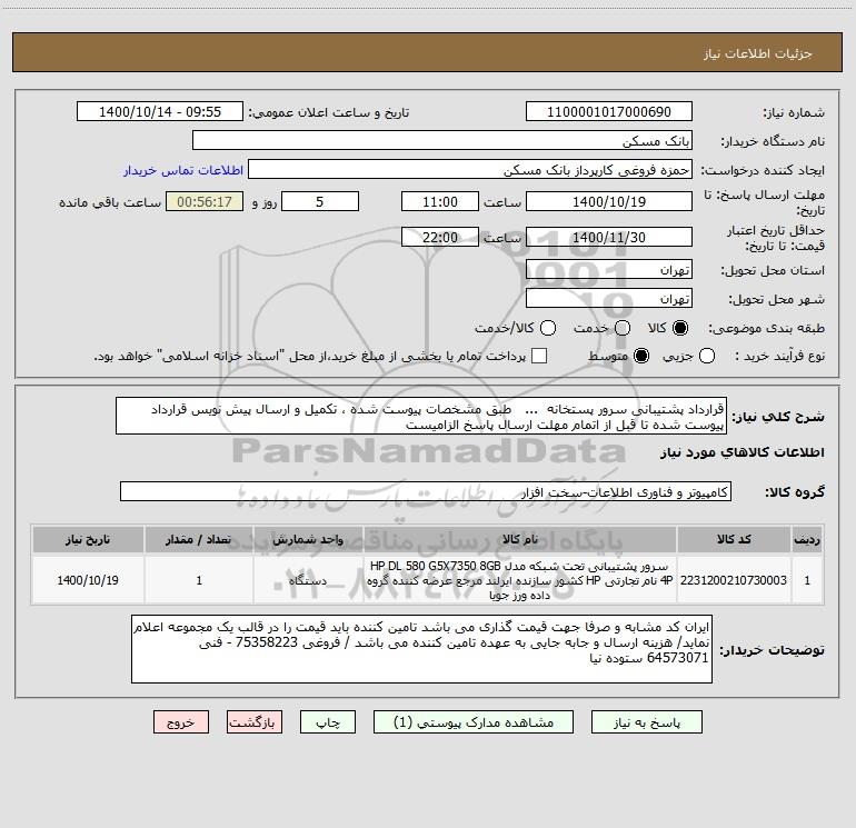 شرح کلی نیاز: قرارداد پشتیبانی سرور پستخانه ... طبق مشخصات پیوست شده ، تکمیل و ارسال پیش نویس قرارداد پیوست شده تا قبل از اتمام مهلت ارسال پاسخ الزامیست