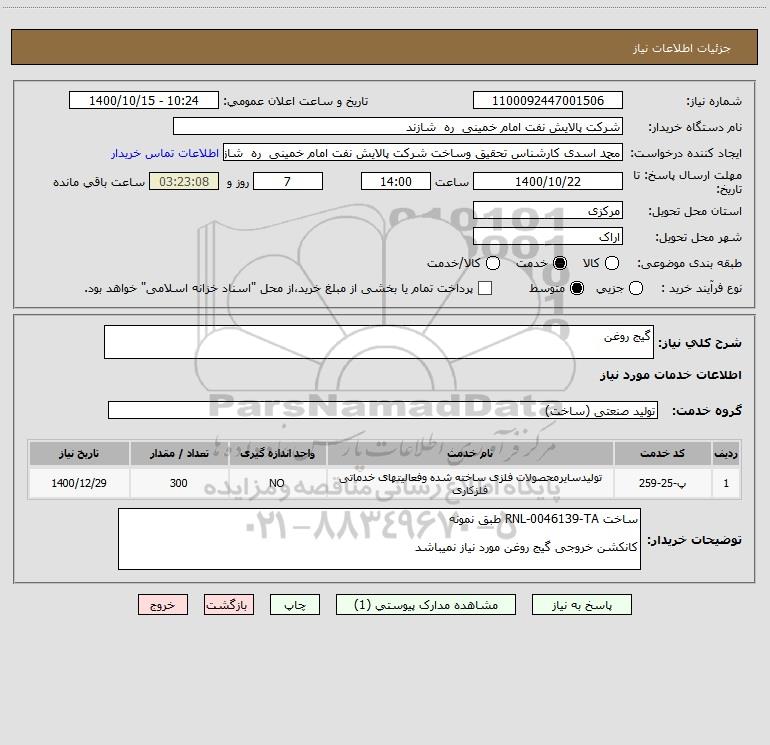 نام دستگاه خریدار:شرکت پالایش نفت امام خمینی ره شازند