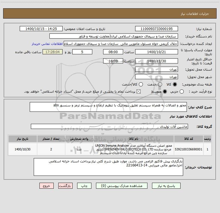 نام دستگاه خریدار: سازمان صدا و سیمای جمهوری اسلامی ایران(معاونت توسعه و فناور