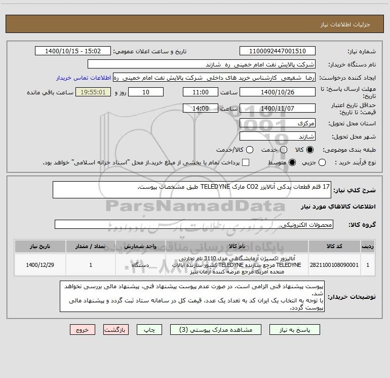 نام دستگاه خریدار:شرکت پالایش نفت امام خمینی ره شازند