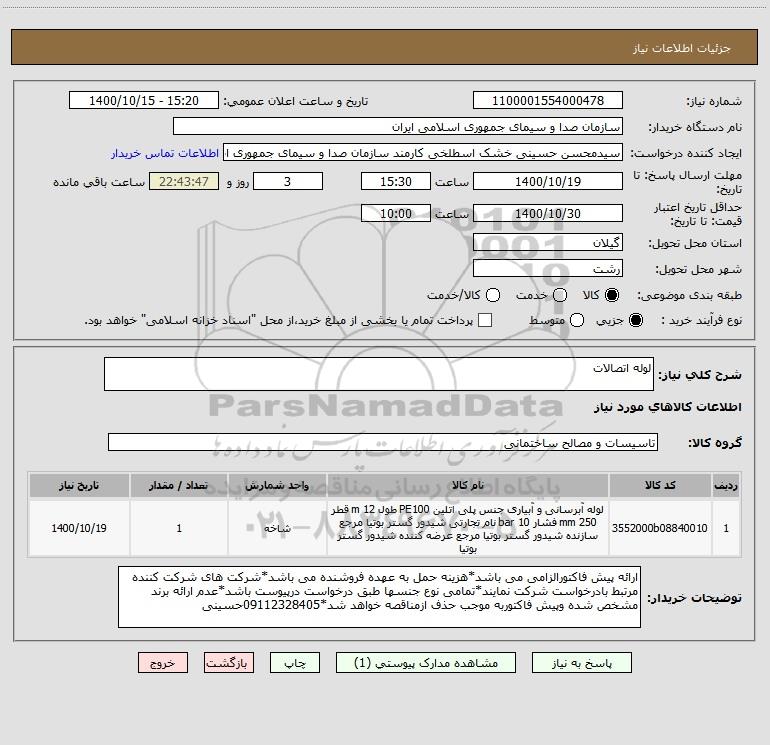 نام دستگاه خریدار:سازمان صدا و سیمای جمهوری اسلامی ایران