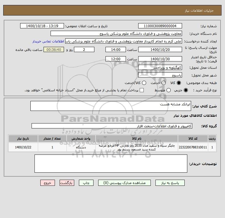 نام دستگاه خریدار:معاونت پژوهشی و فناوری دانشگاه علوم پزشکی یاسوج
