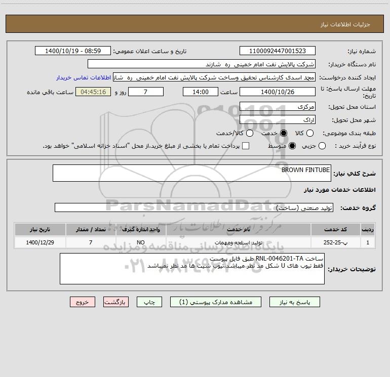 شرح کلی نیاز: BROWN FINTUBE
