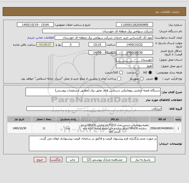 نام دستگاه خریدار:شرکت سهامی برق منطقه ای خوزستان