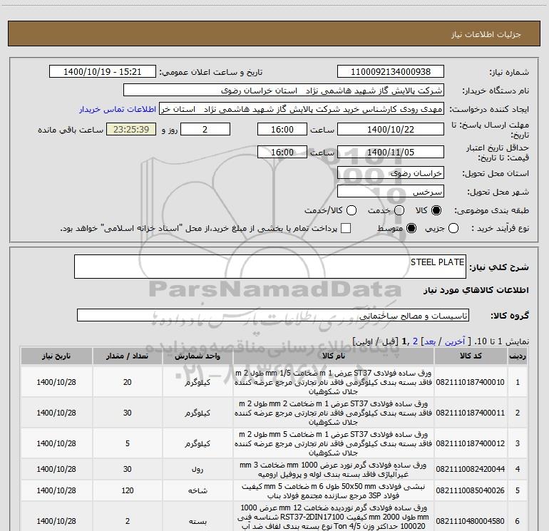 استعلام STEEL PLATE , استعلام STEEL PLATE