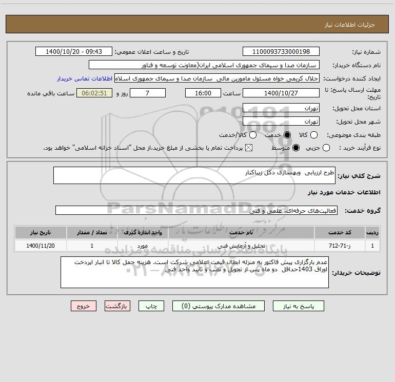 نام دستگاه خریدار: سازمان صدا و سیمای جمهوری اسلامی ایران(معاونت توسعه و فناور