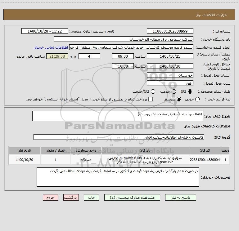 شرح کلی نیاز: انتقال برد بلند (مطابق مشخصات پیوست)